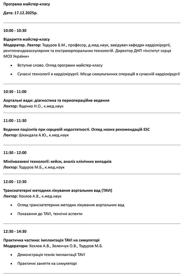 Місце проведення: ДНП «Інститут серця МОЗ України», вул. Братиславська 5А, м. Київ